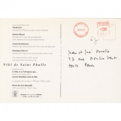 - carton d'invitation du Musée des Arts Décoratifs, présentation des dessins de Niki de Saint Phalle extraits de son livre "Le sida, tu ne l'attraperas pas", 1990